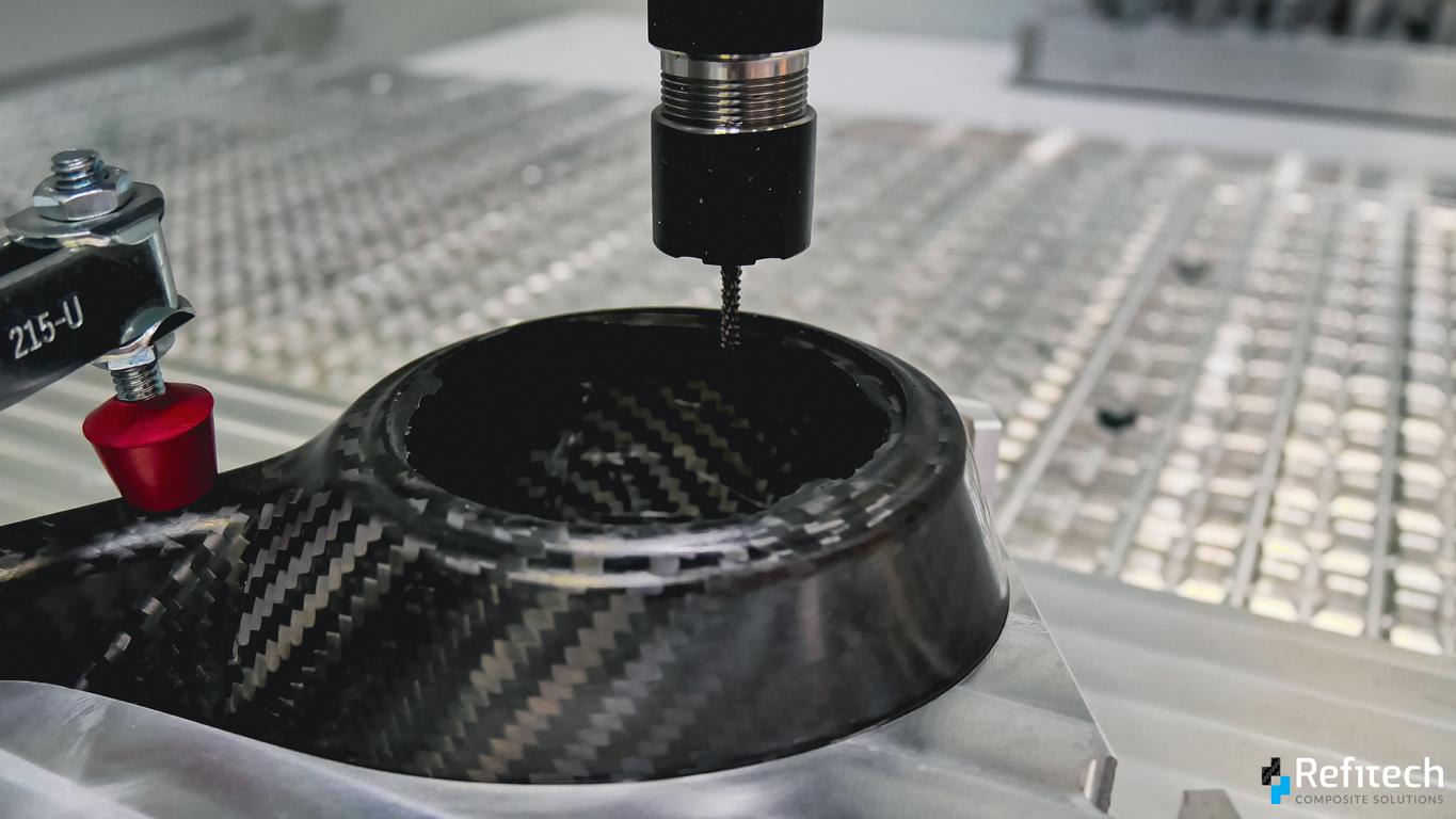 Refitech Composite Solutions heeft een flinke innovatiesprong gemaakt door een nieuwe 5-assige CNC-machine in gebruik te nemen voor de nabewerking van composiet onderdelen. Dit is in aanvulling op de 3-assige bewerkingscentra die het bedrijf al in gebruik heeft. Dankzij de nieuwe machine kan ook de bewerking van meer complexe 3D vormen volledig automatisch worden uitgevoerd, met een hoge snelheid, kwaliteit en reproduceerbaarheid met het oog op seriematige aantallen.
