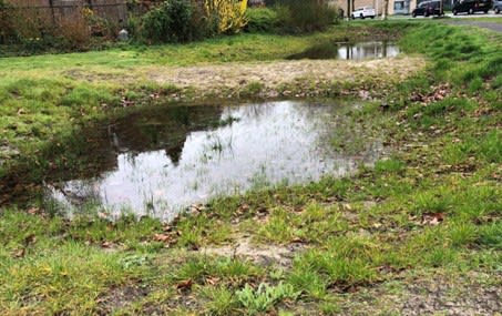 We zetten de safari voort en wandelen verder richting de vakantieparken. Onderweg passeren we een wadi. Een deelnemer kijkt vragend naar de wadi en is benieuwd waar het voor dient. “Een wadi staat voor Water Afvoer Drainage Infiltratie. Het is een groene greppel dat overmatig regenwater opvangt en zuivert. Het geeft het water de ruimte om rustig te infiltreren in de ondergrond. Een wadi helpt zo tegen wateroverlast en droogte”, licht Ivo toe.